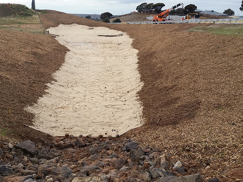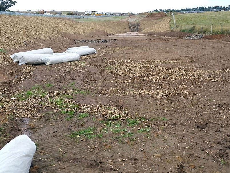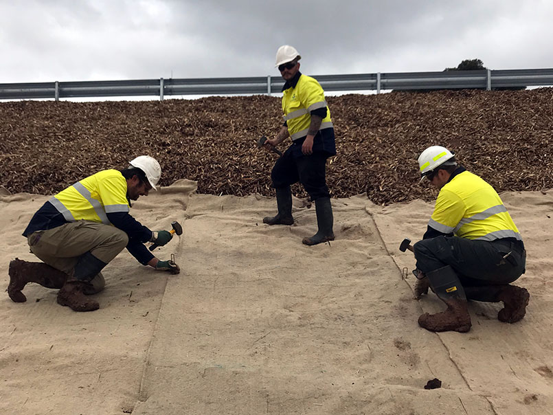 Halletts Way jute mat landscape project with Decmil. Completed in 2018.